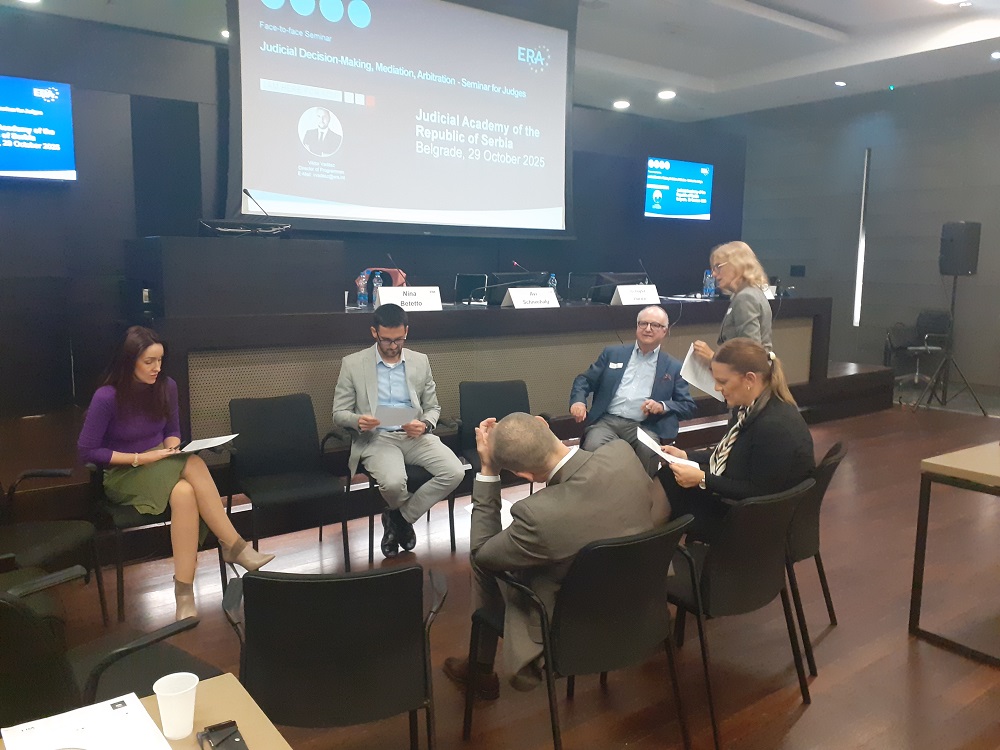 Правосудна академија је у сарадњи са Академијом за европско право (ERA), 29. октобра у Београду, организовала једнодневни семинар за судије на тему „Судско одлучивање, Медијација, Арбитража’’.